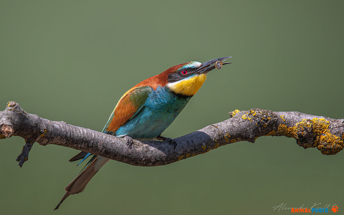 Золотистая щурка с небольшой добычей.